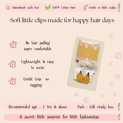 Includes 1 daisy pair + 1 bow clip (3 clips total).
